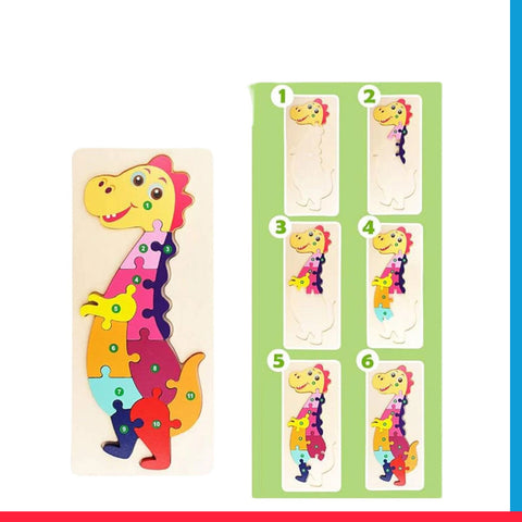 Colorful Wooden Dinosaur Shaped Puzzle with Numerical Number [PD]