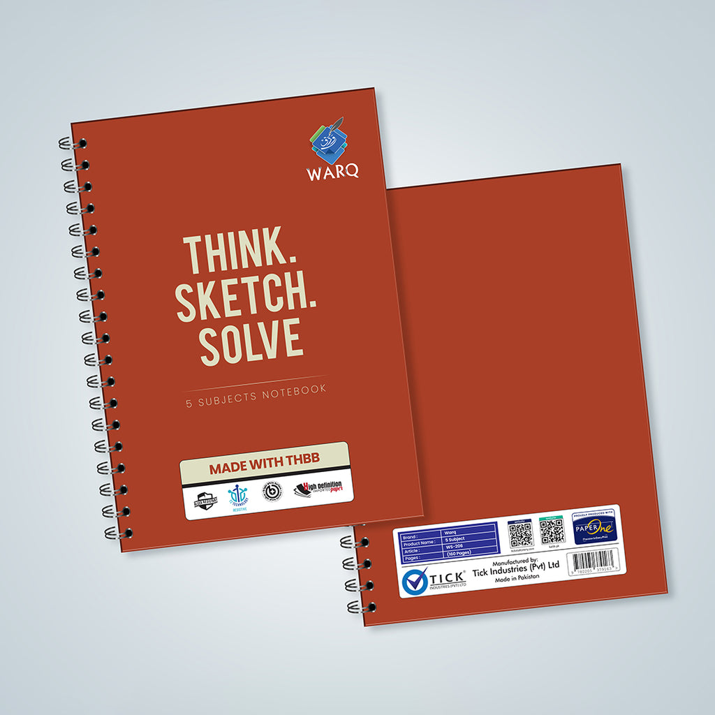 WARQ Premium Spiral Notebook – 5 Subjects [THINK. SKETCH. SOLVE] [COB]