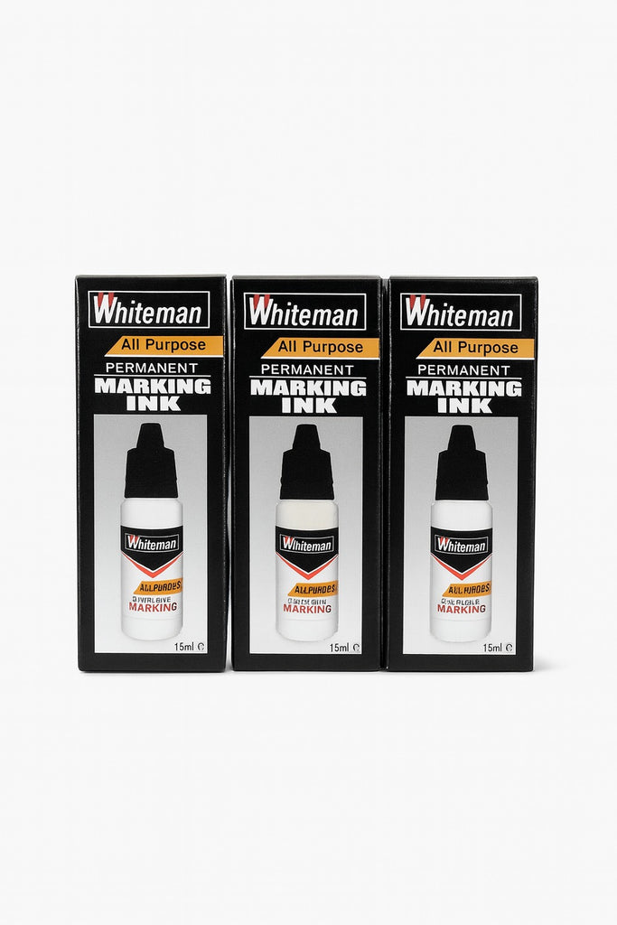 Whiteman Permanent Marking Ink ek high-quality all-purpose ink hai jo smooth, dark aur long-lasting marking provide karta hai. Yeh specially design ki gayi hai permanent writing, labeling aur industrial/craft use ke liye.