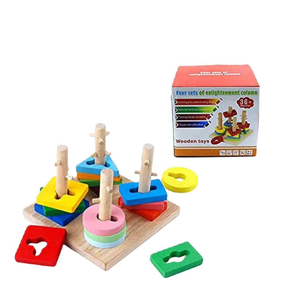 Introduce your child to the world of shapes and spatial reasoning with the Wooden Column Geometric Tower, a Montessori-inspired educational toy designed to enhance fine motor skills, problem-solving, and cognitive development in children This vibrant, multi-column tower combines sorting, stacking, and matching activities for endless creative play while fostering foundational learning